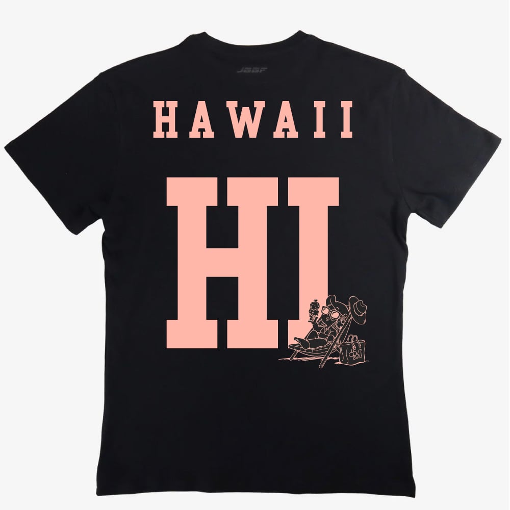 Aloha Mapuaからお洒落な「HI Tシャツ」が登場しました!胸元にはシンプルなAlohaMapuaロゴがあり、背面にはハワイの陽気な雰囲気を感じさせる「HI」とビーチチェアでくつろぐマプアのデザインがさりげなくプリントされています。カジュアルなスタイルを楽しみながら、ハワイの爽やかな気分を味わうことができるアイテムです。