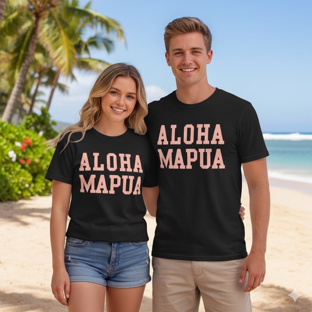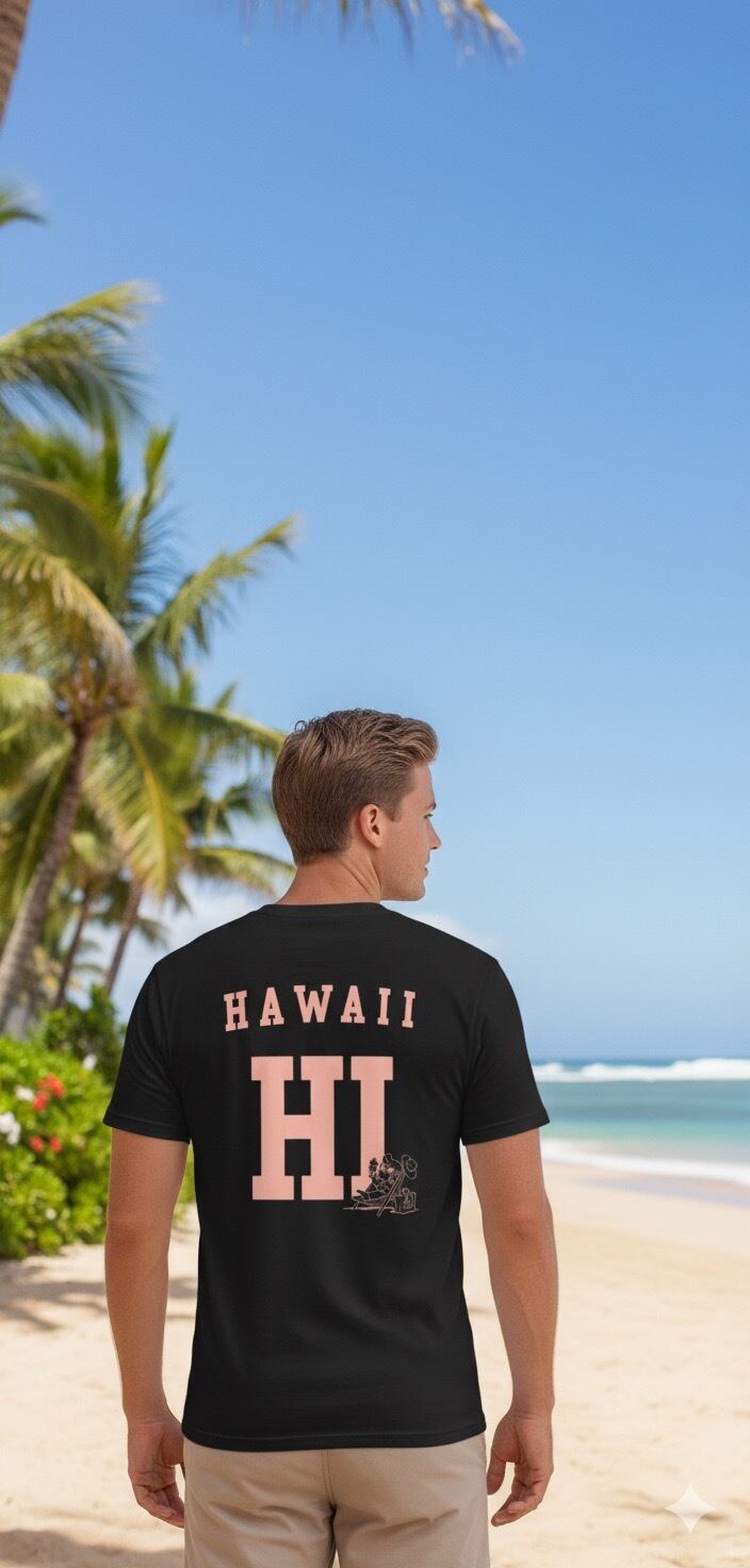 Aloha Mapua presents the stylish "HI T-Shirt," featuring a simple AlohaMapua logo on the chest and a subtle print of the cheerful "HI" and a Mapua relaxing on a beach chair on the back. Enjoy casual style while soaking up the refreshing vibe of Hawaii!
