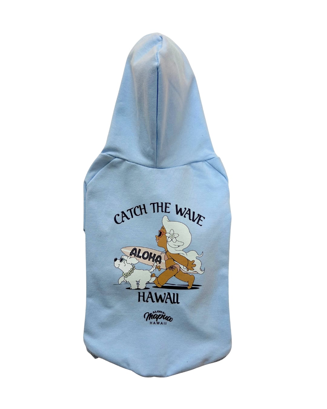 Aloha Mapuaから愛らしいドッグパーカー (CATCH THE WAVE)」が登場しました!鮮やかなブルーの色合いと、海をテーマにしたデザインが施されたこのパーカーは、愛犬・愛猫のおしゃれを一層引き立てるアイテムです。