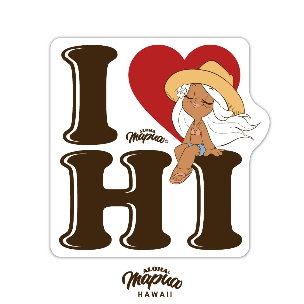ハワイを愛する気持ちを表現する、【Aloha Mapua Sticker】I ♥ HAWAII。カラフルでポップなデザインが目を引くステッカーは、ノートやPC、車や旅行バックなどに貼るだけで気分がウキウキします。屋外でも最適なステッカーです。